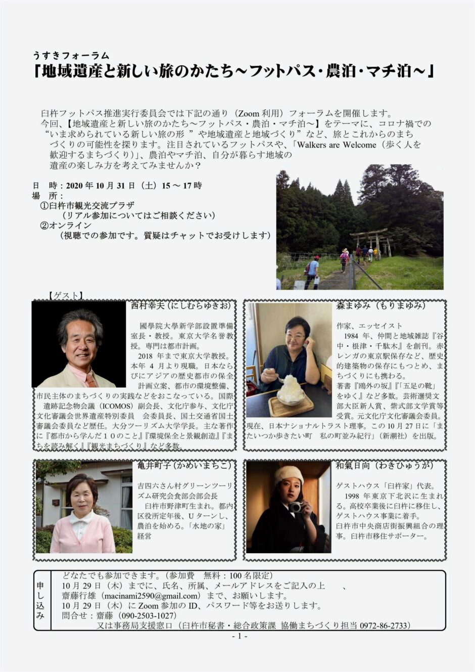ホーム未分類 うすきフォーラム「地域遺産と新しい旅のかたち〜フットパス・農泊・マチ泊〜」開催 2020年10月1日2024年3月15日 SHARE ポスト シェア はてブ LINE 2020年10月1日(木) コメントを残す コメントをキャンセルメールアドレスが公開されることはありません。 ※ が付いている欄は必須項目ですコメント ※ 名前 ※ メール ※ サイト 次回のコメントで使用するためブラウザーに自分の名前、メールアドレス、サイトを保存する。